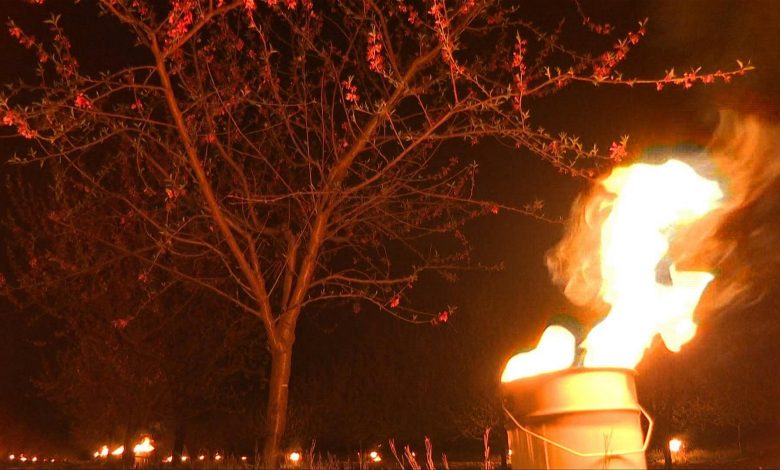 إشعال الشموع لحماية البساتين من الصقيع في ألمانيا ( فيديو )