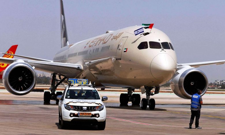 هبطت الثلاثاء 6 أبريل أول رحلة ركاب مباشرة بين الإمارات وإسرائيل في مطار بن غوريون في ضواحي مدينة تل أبيب.
