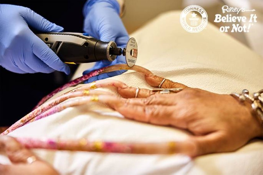 وقبل البدء في عملية قص الأظافر، قاست الدكتورة أليسون ريدنيغر، الاختصاصية الجلدية، الأظافر التي نمت بشكل ملحوظ منذ عام 2017 عندما تم توثيقها في المرة السابقة، حيث بلغ طول الأظافر على اليد اليمنى 338.5 سم وعلى اليد اليسرى 395.05 سم، ليكون الإجمالي الذي حقق الرقم القياسي هو 733.55 سم.