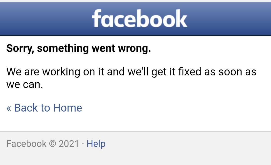 و عند محاولة المستخدم فتح موقع او تطبيق “فيسبوك” تظهر رسالة تقول: “عذرا، هناك خطأ ما.نحن نعمل على حلها وسنصلحها بأسرع ما يمكن.”