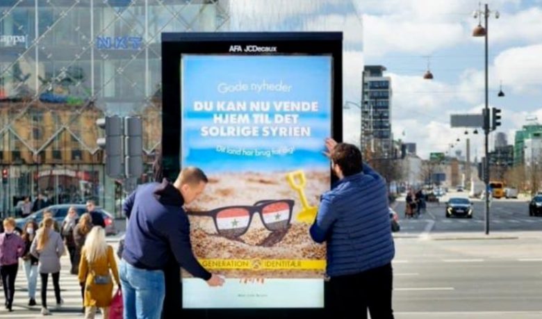 وقالت صحيفة “تلغراف” البريطانية، إن نشطاء اليمين المتطرف تعرضوا لانتقادات حادة بعد أن ألصقوا إعلانات سفر وهمية في كوبنهاغن تخبر اللاجئين السوريين بـ “الأخبار السارة” وأن بإمكانهم “العودة الآن إلى سوريا المشمسة”.
