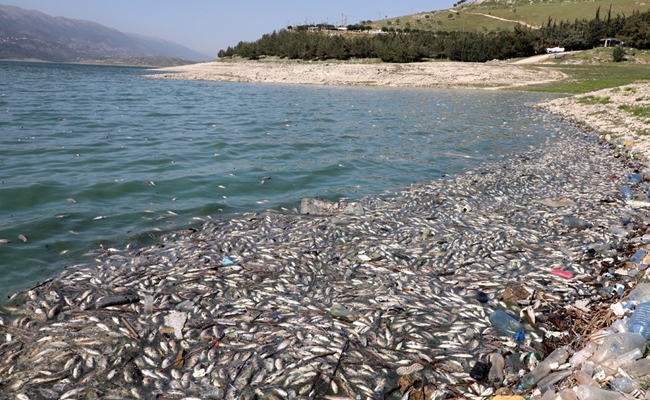 أطنان من السمك النافق على شواطئ بحيرة لبنانية تنذر بكارثة بيئية
