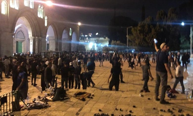 وتشهد مدينة القدس منذ بداية شهر رمضان، اعتداءات تقوم بها قوات الشرطة الإسرائيلية والمستوطنون، في منطقة “باب العامود” وحي “الشيخ جراح” ومحيط المسجد الأقصى. (ANADOLU)