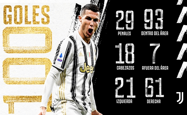 وأحرز كريستيانو رونالدو بذلك هدفه اليوبيلي رقم 100 بقميص “البيانكونيري” خلال 131 مباراة، ليصبح “صاروخ ماديرا” أسرع لاعب في تاريخ يوفنتوس يصل إلى 100 هدف أو أكثر في جميع المسابقات في أول ثلاثة مواسم له معه، بواقع 14 هدفا فى دوري أبطال أوروبا، و80 هدفا في الدوري الإيطالي، و4 أهداف في كأس إيطاليا، وهدفين في كأس السوبر الإيطالي.