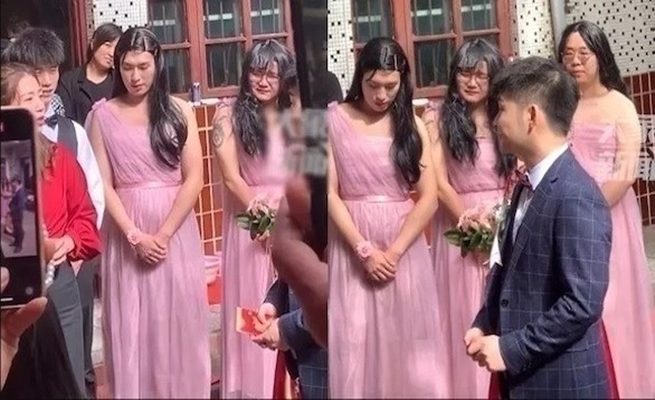 انتشر مقطع فيديو لحفل زفاف في مدينة بينغدينغشان بمقاطعة هنان الصينية، على وسائل التواصل الاجتماعي، يظهر ثلاثة رجال بفساتين وردية، في دور وصيفات العروس.