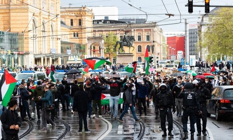 وأدى تصاعد العنف بين إسرائيل ومسلحين فلسطينيين إلى خروج مئات الأشخاص إلى الشوارع في العديد من مدن سكسونيا السفلى خلال عطلة نهاية الأسبوع، وكانت غالبيتها مظاهرات موالية لفلسطين، ووفقاً للشرطة، كانت المسيرات سلمية إلى حد كبير. (DPA)