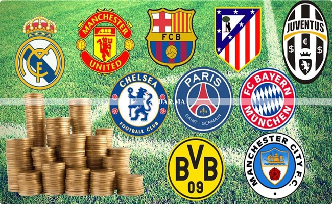وضمت القائمة 5 أندية فقط تخطت علاماتها التجارية حاجز المليار يورو، هي ريال مدريد وغريمه الإسباني برشلونة، ثم مانشستر يونايتد ومانشستر سيتي الإنكليزيان وبايرن ميونيخ الألماني.