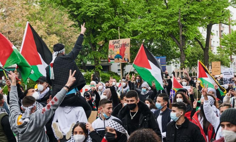 المئات يشاركون في مظاهرة ترفع الأعلام الفلسطينية في برلين ( فيديو )