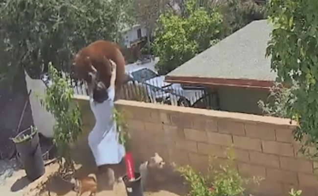 وقامت الفتاة التي تدعى هيلي بالركض نحو الدب ودفعه عن سور منزلها بعد سماعها نباح كلابها.