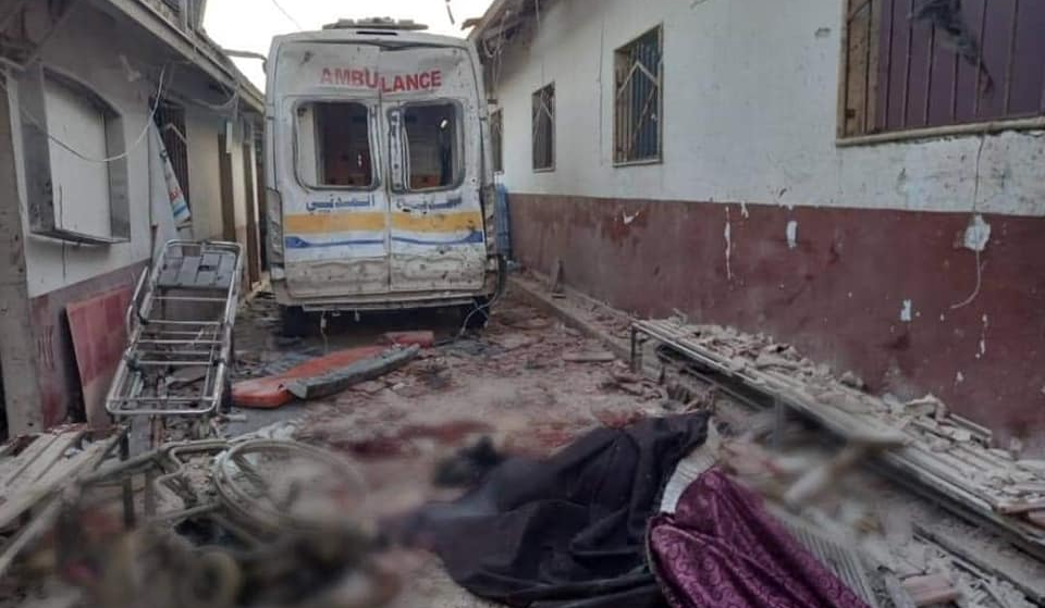 وذكر المرصد، أن القصف استهدف مستشفى الشفاء في المدينة، وكان بين الضحايا طبيب و3 نساء من الطاقم الطبي، ويوجد إلى جانب الضحايا عدد كبير من المصابين.