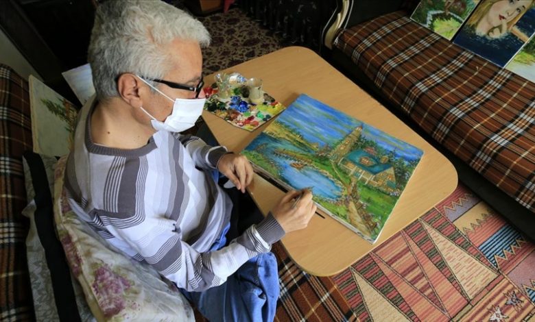 تركيا : رسام و أستاذ في الخط مصاب بالشلل يقدم مثالاً يحتذى به ( فيديو )