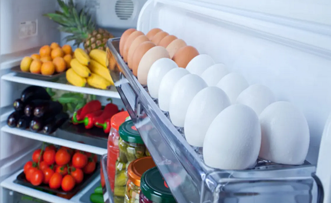فالبيض يكون في أفضل حالاته عند تخزينه في درجة حرارة ثابتة، لذلك يوصى بالاحتفاظ به في الثلاجة على الرف الأوسط.