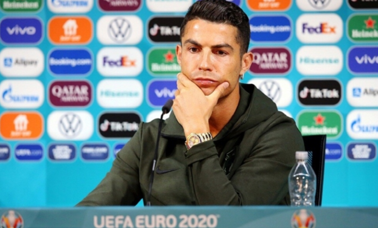 وفي سياق آخر عاد كريستيانو رونالدو، ليثير الجدل مجدداً، ليس داخل الملعب هذه المرة، بل خارجه، وخلال الندوة الصحفية التي عقدها، الإثنين، وذلك بسبب الحركة التي قام بها تجاه زجاجات المشروب الكحولي “كوكاكولا”.