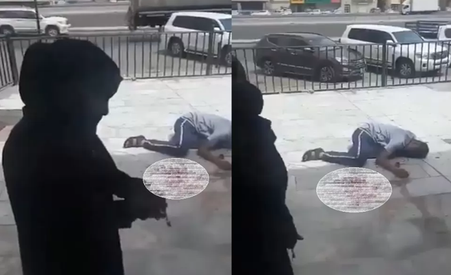 وأظهر فيديو امرأة ترتدي النقاب، بعد أن أقدمت على جريمتها، بينما ملقى أمامها في الشارع، رجل غارق بالدماء.