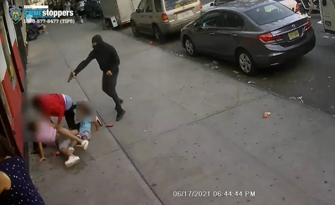 أظهر شريط فيديو نشرته الشرطة، الجمعة، المسلح، الذي كان يرتدي ملابس سوداء بالكامل، يقفز من على دراجة في أحد شوارع برونكس مطاردا ضحيته، ويدعى حسن رايت (24 عاما).