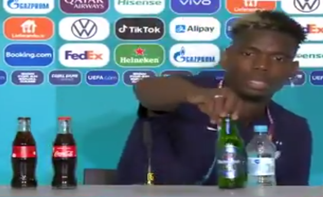 وكان بوغبا سحب زجاجة الخمر الموضوعة أمامه على الطاولة قبل التحدث إلى الصحفيين خلال المؤتمر الصحفي بعد انتهاء مباراة فرنسا وألمانيا، ما أثار جدلاً واسعاً على مواقع التواصل الاجتماعي، لاسيما أنَّ تصرف لاعب الوسط الفرنسي جاء بعد 24 ساعة من قيام النجم البرتغالي كريستيانو رونالدو بسحب زجاجتي “كوكا كولا”، وطالب بشرب الماء بدلاً من المشروب الغازي الأمريكي الشهير.