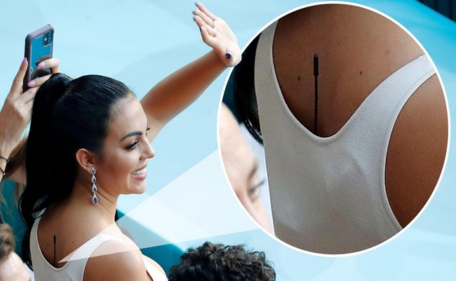 ورصدت الكاميرات ميكروفونا صغيرا مربوطا بالجزء الخلفي من حمالة صدر جورجينا، أثناء تشجيع رونالدو؛ ما دفع متابعين للاستفسار حول الأمر.