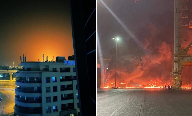 انتشر على مواقع التواصل الاجتماعي مقطع فيديو يظهر المشاهد الأولى للانفجار العنيف الذي وقع في ميناء جبل علي بمدينة دبي الإماراتية.