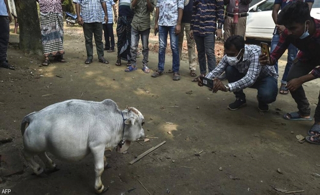 خرق آلاف الأشخاص في بنغلاديش قوانين الإغلاق على مستوى البلاد، من أجل رؤية “بقرة قزمة” يدعي أصحابها أنها الأصغر في العالم.