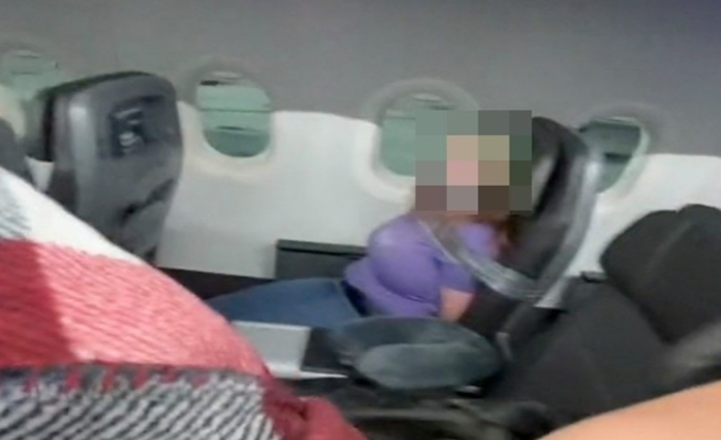 وقالت المسافرة التي صورت الفيديو: ”طاقم الطائرة أوضح أن هناك مشكلة في مقدمة الطائرة وأنه يتعامل معها… وعندما هبطت الطائرة على الأرض، استطعت أن التقط صورة تظهر امرأة مثبتة على مقعدها وفمها مكمم بشريط لاصق.“