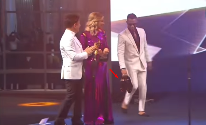 لكن اللافت في حضور محمد رمضان الاحتفال والتكريم قيامه في أثناء سيره على المسرح بخلع حذائه أثناء صعوده إلى خشبة المسرح، متخوفاً من حدوث سقوط آخر بعد فيديو سقوطه على الممشى المؤدي للمسرح بعد انزلاق قدمه في عام 2020.