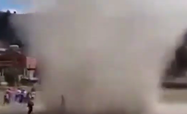 فاجأت عاصفة هوائية عنيفة، اللاعبين قبيل انطلاق مباراة بين فريقين لكرة القدم في إحدى البلدات البوليفية.