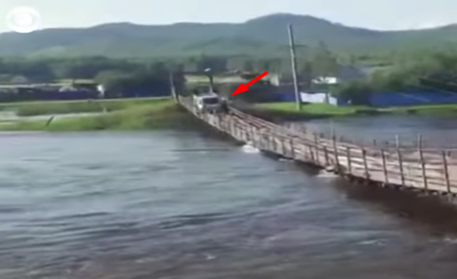 انهار جسر معلق لحظة مرور شاحنة فوقه في منطقة شرقي روسيا.