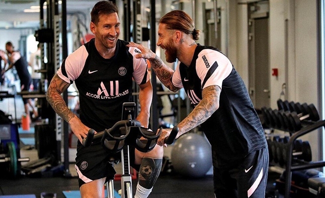 ولقي ميسي ترحيبا حارا من لاعبي سان جيرمان بشكل عام، فيما سلطت وسائل الإعلام الضوء بشكل كبير على لقاء ميسي قائد برشلونة السابق مع سيرخيو راموس قائد ريال مدريد السابق، والذين أصبحا زميلين في نفس الفريق اليوم بعد أن كانا قائدين للغريمين التقليديين الأشهر في العالم.