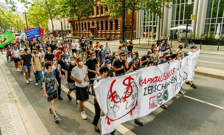 وبدأت في وقت متأخر من بعد ظهر الجمعة في الحي المالي بفرانكفورت مظاهرة كبيرة، عقب تنظيم ما يسمى بمسيرة نظمها حماة المناخ الذين يغلب عليهم الشباب، حيث يأتي المتظاهرون من اتجاهات عدة ليجتمعوا في مركز واحد.