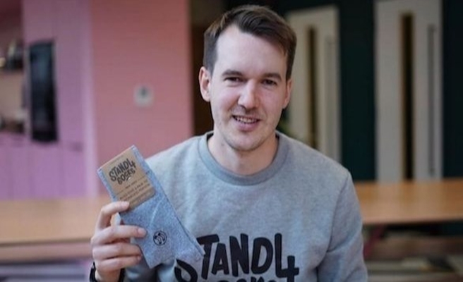 قال جوش تورنر (30 عاماً) من مانشستر، إنه بدأ تجارته في بيع الجوارب بشعار ترويجي ذي صبغة خيرية، يقضي بالتبرع بثمن زوج من الجوارب لجمعية خيرية مقابل كل زوج من الجوارب يتم شراؤه.