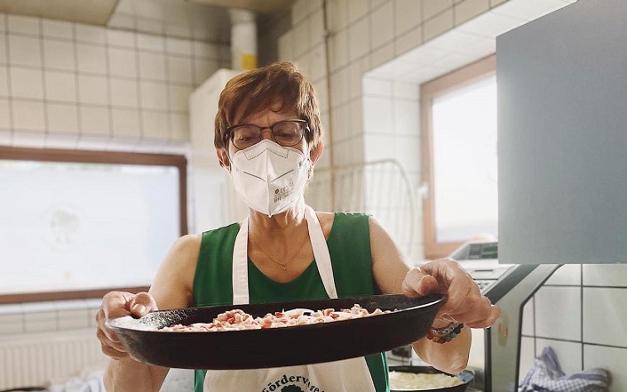 “قمنا بعجن أكثر من 100 حلوى فلام (طبق ألماني-فرنسي يشبه البيتزا) لأجل غرض نبيل اليوم. كل ما أنتجناه سيذهل إلى ضحايا كارثة الفيضانات”، كتبت الوزيرة عبر صفحتها على “فيسبوك”، يوم 13 آب، من مدينة بوتلينغن في ولاية زارلاند.
