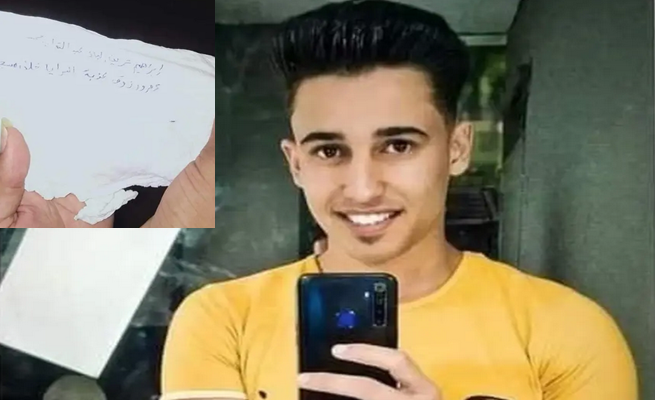وترك الشاب رسالة على الشاطئ قبل انتحاره دوّن بها اسمه وعنوانه. كما نشر تدوينة على صفحته الشخصية في موقع “فيسبوك” قبل الواقعة بساعات، كاشفاً فيها تفاصيل مؤلمة.