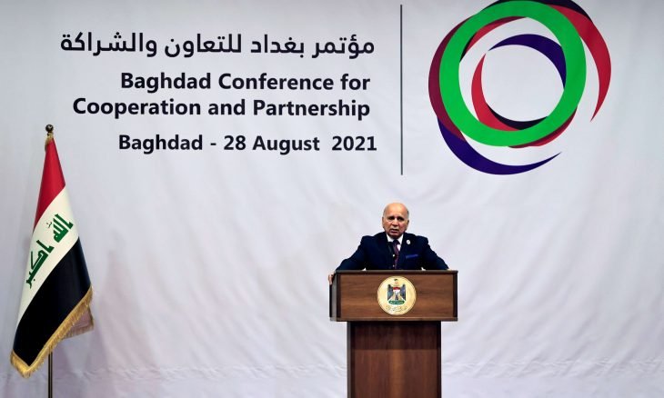 جاء ذلك خلال مؤتمر صحافي في ختام “مؤتمر بغداد للتعاون والشراكة“، بمشاركة 9 دول بينها السعودية وإيران.