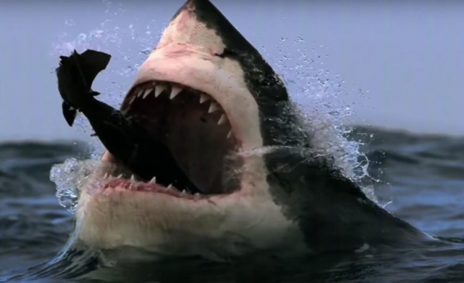 وأظهرت لقطات الفيديو سرعة وقدرة القرش في افتراس الفقمة بطريقة لا نشاهدها كثيرا، قفزة واحدة بأسنانه الأمامية حطمت جسم الفقمة على الفور وتناثرت أجزاء صغيرة فوق سطح الماء لبقية الطيور الجارحة.