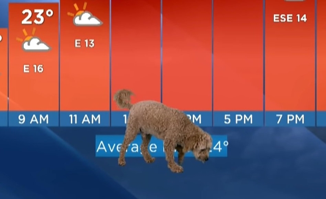 في حادثة طريفة، اقتحم كلب نشرةَ أرصاد جوية على الهواء مباشرة، في تلفزيون كندي.