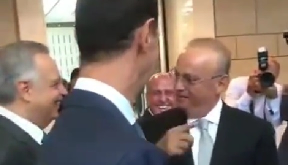 وكالة روسية : ” رئيس حزب لبناني يمازح بشار الأسد ” ( فيديو )