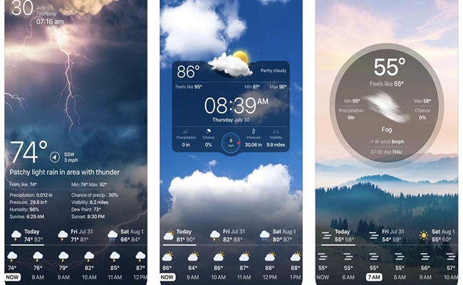 ومن أشهر تطبيقات الطقس على الهواتف الذكية، أكيو ويذر، ودرك سكاي، وويذر شانل، وويذر أون زا واي.