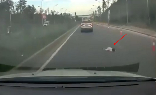 أظهر مقطع فيديو متداول سقوط رضيع صغير على طريق سريع في الصين من نافذة سيارة بسبب إهمال والدته تركها مفتوحة.
