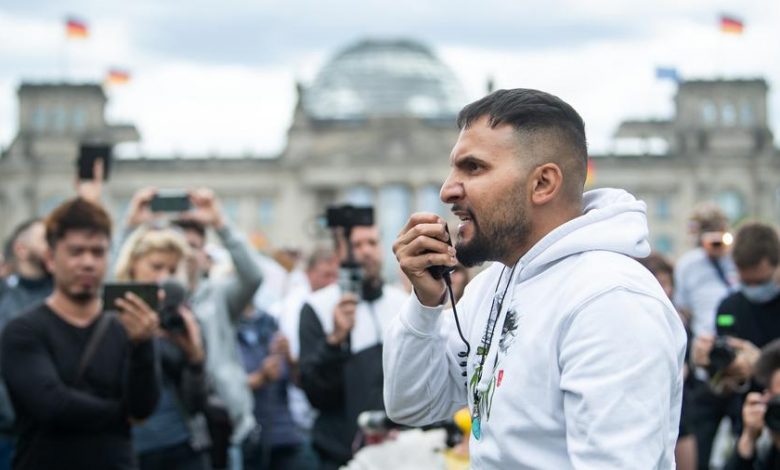 وكان هيلدمان يٌعرف في السابق بأنه مؤلف كتاب طبخ نباتي وخبير لياقة بدنية، حيث يطلق على نفسه الآن اسم “الجناح اليميني المتطرف”، كما ظهر في احتجاجات ضد قيود مكافحة فيروس كورونا. (DPA)