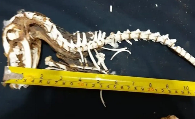 في التفاصيل، أفادت “وكالة الأنباء الليبية”، بأن الهيكل وجد بحجم راحة اليد، وقد تضررت بعض أطرافه، إلا أن بنيته العامة ما زالت متماسكة ويتمتع برأس قوية وفكين ظاهرتين، وأكثر ما يميزه هو ضآلة حجمه الذي لا يتجاوز 15 سنتيمترا.