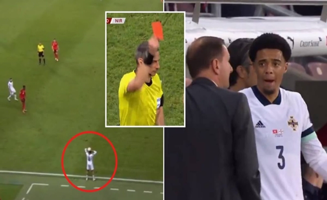 ورغم الاحتجاجات الصاخبة من لاعبي أيرلندا الشمالية، إلا أن الحكم رفض التراجع عن قراره، ليلعب منتخب إيرلندا الشمالية بـ10 لاعبين منذ الدقيقة 37.