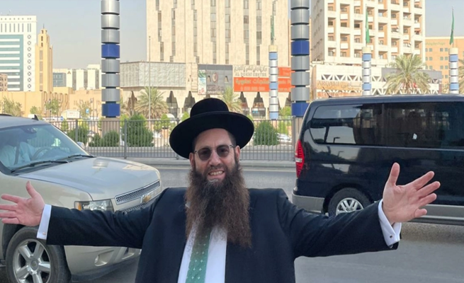 يظهر في هذا المقطع الحاخام الإسرائيلي، داخل سيارة، رفقة أشخاص لم تكشف هويتهم، بينما يبدو من خلال لباس السائق أنه سعودي، بينما ذكر سائقون أن الأمر يتعلق برجل أعمال سعودي.