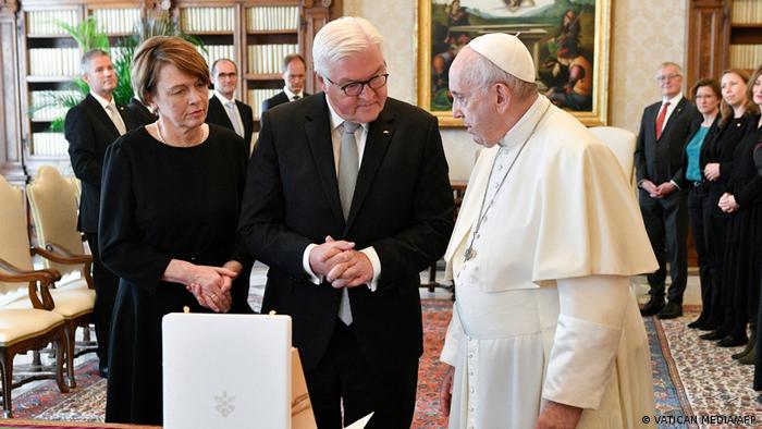 وكان البابا فرنسيس استقبل في وقت سابق شتاينماير وزوجته إيلكه بودنبندر في القصر الرسولي لفترة استمرت قرابة الساعة. وفي أعقاب ذلك، عقد الرئيس الألماني محادثات مع الكاردينال بيترو بارولين الأمين العام للفاتيكان والشخصية الثانية هناك بعد البابا.