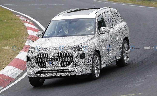 ظهرت أودي Q9 الرائدة الجديدة كلياً أثناء اختبارها في حلبة نوربورغرينغ الألمانية، بحجمها الكبير الملفت للانتباه، وشبكها الأمامي الكبير كذلك.