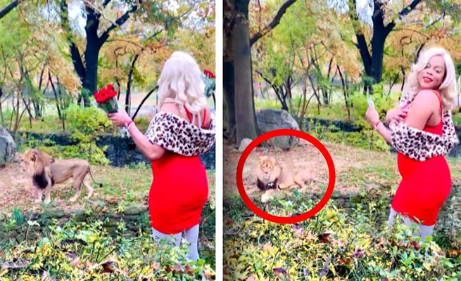 أثارت سيدة أمريكية الجدل في حديقة برونكس في ولاية نيويورك الأمريكية بمقطع فيديو لها وهي ترقص أمام عرين أسد وترميه بالورود والمال.