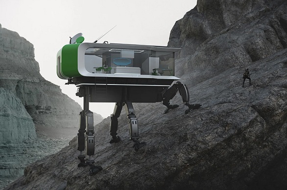 منزل متنقل مستقبلي بأرجل ميكانيكية لاجتياز التضاريس الصعبة