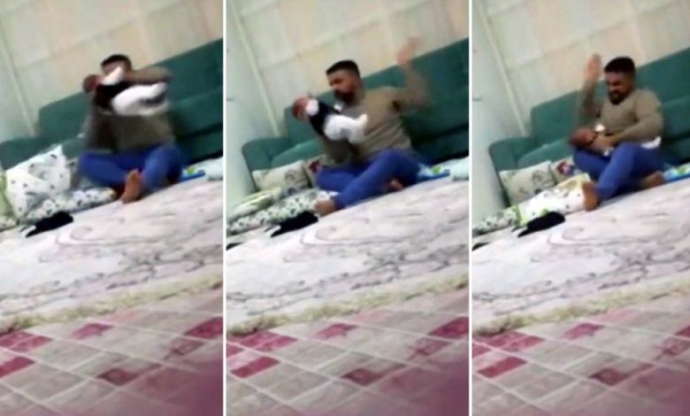 انتشر على مواقع التواصل الاجتماعي، مقطع مصور يظهر أباً تركياً وهو يضرب ابنته الرضيعة بعنف.