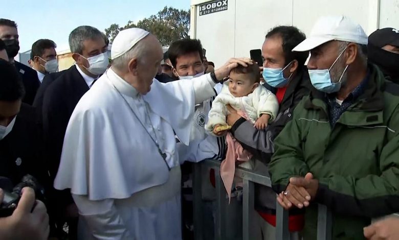 البابا فرنسيس يتجول في مركز لإيواء اللاجئين في اليونان ( فيديو )