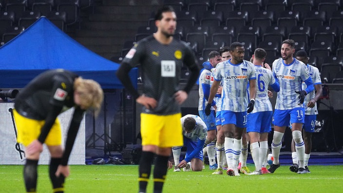وعلى الملعب الأولمبي في برلين، أنهى دورتموند الشوط الأول من مباراته أمام هيرتا، متقدماً بهدف سجله يوليان براندت في الدقيقة 31، لكن هيرتا برلين قلب الأمور لصالحه تماماً في الشوط الثاني، واستحق أن يدرك التعادل في الدقيقة 51 بواسطة المهاجم الجزائري إسحاق بلفوضيل.