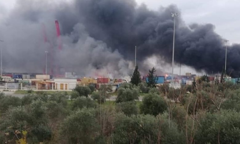قصف إسرائيلي يتسبب بحرائق ضخمة في ميناء اللاذقية ( فيديو )